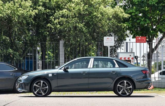 再来看车身侧面部分,奥迪A4L的车身线条流畅而优雅。一条从前大灯贯穿至车尾的腰线,不仅增加了车身的层次感,还营造出一种向前俯冲的运动姿态。车身比例协调,轴距达到了2908mm,在同级别车型中具有一定的优势,为车内乘客提供了较为宽敞的腿部空间。此外,奥迪A4L还配备了大尺寸的轮毂,多幅式的设计造型精致,与车身相得益彰,既提升了车辆的视觉效果,又保证了行驶的稳定性。