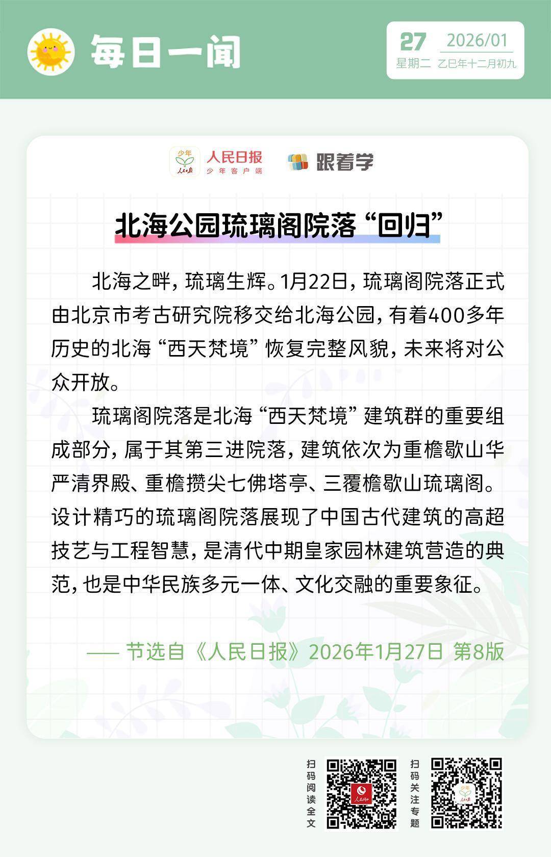 大通证券 每日一闻丨北海公园琉璃阁院落“回归”